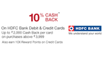 10% Cash Back from HDFC and more